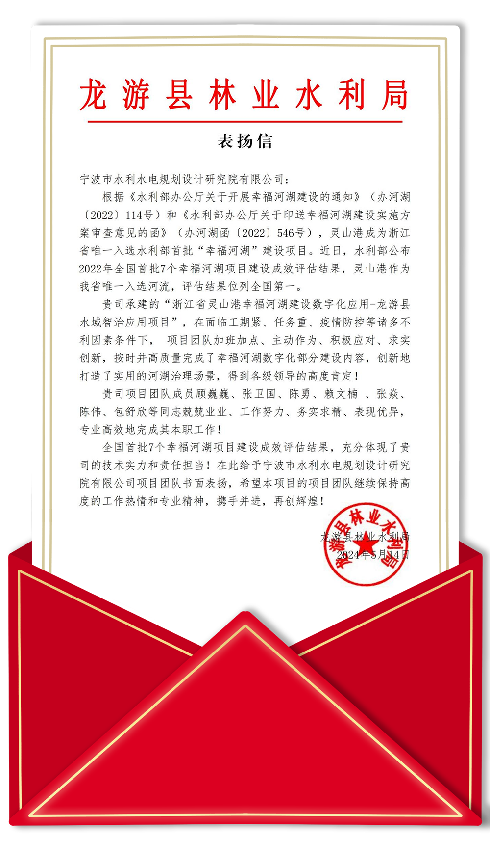 為寧波院“智”慧鼓掌!—— 一封來自龍游縣林業(yè)水利局的表揚信發(fā)布日期:2024.06.05