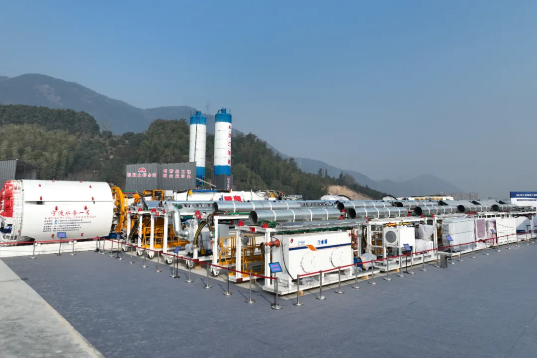 作為省、市重點工程建設(shè)項目,寧波市水庫群東西線聯(lián)通工程位于寧波市奉化區(qū)南部山區(qū),工程設(shè)計輸水規(guī)模為40萬m³/d。建設(shè)內(nèi)容包括一條干線、兩條支線,以及沿線調(diào)節(jié)站及各類閥井,全線總長約40.54km。6#隧洞作為本工程重要節(jié)點性分部工程,全長約12.28km,采用鉆爆法+TBM(全斷面硬巖掘進機)進行隧洞開挖。值得一提的是,本次所采用的敞開式TBM設(shè)備“寧波水務(wù)一號”,其開挖直徑4.03米,整機長度約225米,掘進長度10.87km,為寧波水利行業(yè)首次應用。