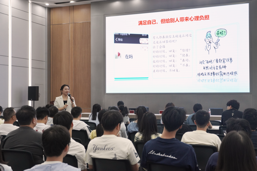 陳瑛老師的講座圍繞自我激勵(lì)、協(xié)同溝通、對(duì)外溝通、對(duì)上溝通四大維度展開。首先,陳瑛老師分別以工作場(chǎng)景和生活場(chǎng)景中的溝通對(duì)話與大家進(jìn)行互動(dòng),帶領(lǐng)大家對(duì)“高情商”進(jìn)行思考與剖析,由此展開當(dāng)天的主題。隨后,結(jié)合豐富的實(shí)戰(zhàn)案例與互動(dòng)環(huán)節(jié),陳瑛老師層層遞進(jìn),深入淺出地講解了如何在日常工作中實(shí)現(xiàn)高效溝通,激發(fā)自我驅(qū)動(dòng)力,提升團(tuán)隊(duì)協(xié)同效能。在長(zhǎng)達(dá)2.5小時(shí)的課程中,陳瑛老師還結(jié)合商務(wù)禮儀的要點(diǎn),根據(jù)不同場(chǎng)景對(duì)溝通實(shí)操進(jìn)行了解析。并強(qiáng)調(diào),良好的溝通不僅是技巧,更是一種心態(tài)與習(xí)慣的培養(yǎng),也是實(shí)現(xiàn)個(gè)人與團(tuán)隊(duì)實(shí)現(xiàn)共同成長(zhǎng)的重要途徑。