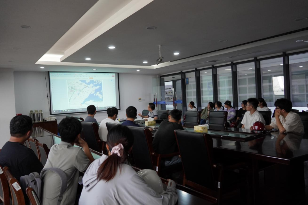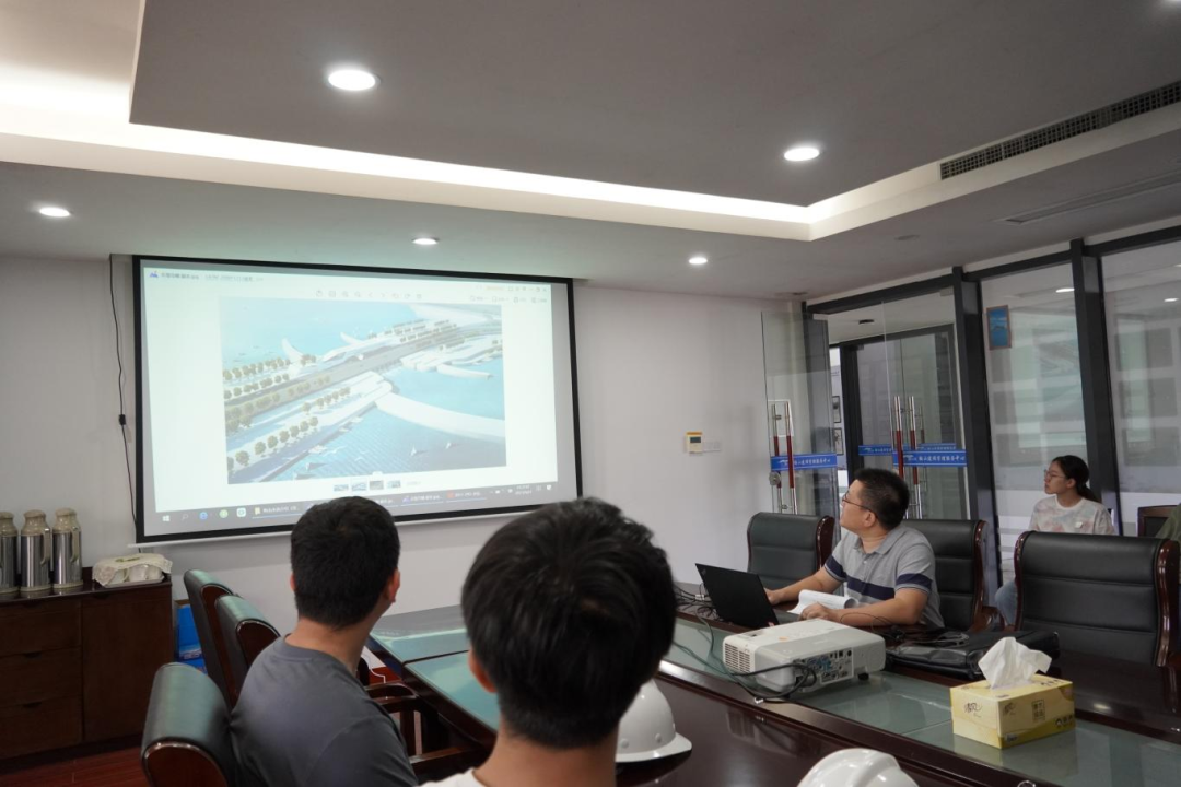 接著,研學(xué)隊(duì)伍來(lái)到會(huì)議室,胡經(jīng)理結(jié)合建設(shè)目標(biāo)、工程建設(shè)客觀(guān)因素、工程效益和景觀(guān)效果,詳細(xì)講解設(shè)計(jì)思路、問(wèn)題對(duì)策和創(chuàng)新點(diǎn),為大家上了一堂嚴(yán)謹(jǐn)生動(dòng)的復(fù)盤(pán)課。比如海堤采用緩坡入海,外側(cè)采用異形結(jié)構(gòu)塊消浪,內(nèi)坡采用生態(tài)水工磚美化,使海堤具備結(jié)構(gòu)和生態(tài)景觀(guān)雙重效果;船閘與海堤銜接段軟土處理采用新型技術(shù)應(yīng)用——樁網(wǎng)復(fù)合地基,形成“樁-網(wǎng)-土”協(xié)同工作共同承載的復(fù)合工藝。在座職工認(rèn)真聆聽(tīng)梅山灣如何從曾經(jīng)的“漲潮黃沙水,落潮滿(mǎn)目泥”到如今的“水清、岸綠、波寧、潮平”,受益匪淺。