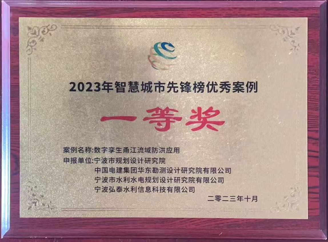 近日,我院與寧波市規(guī)劃設計研究院、華東勘測設計研究院有限公司、寧波弘泰水利信息科技有限公司共同承擔的“數(shù)字孿生甬江流域防洪應用”項目作為寧波智慧城市創(chuàng)新應用成果,精彩亮相“第十六屆中國智慧城市大會”,并榮獲2023智慧城市先鋒榜優(yōu)秀應用案例一等獎,同時入選《中國智慧城市優(yōu)秀應用案例集(2023)》,已由中國電力出版社出版發(fā)行。