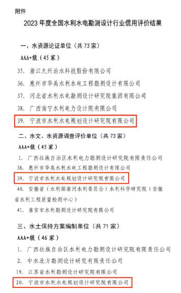 4項AAA,3項AAA+!我院在2023年度水利建設市場主體及全國水利水電勘測設計行業(yè)信用評價中再創(chuàng)佳績