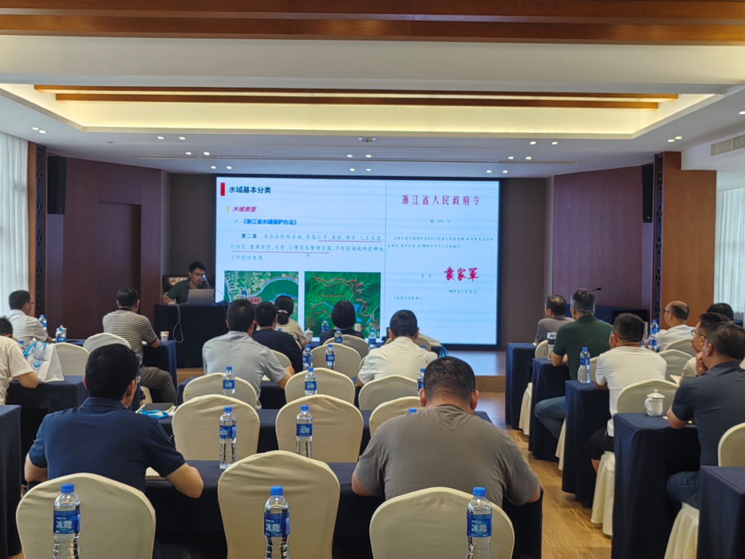 培訓(xùn)現(xiàn)場,我院規(guī)劃四所所長楊益青憑借其扎實(shí)的學(xué)術(shù)功底與豐富的實(shí)踐經(jīng)驗(yàn),生動呈現(xiàn)了海曙區(qū)這一歷史與現(xiàn)代交融之地的水文畫卷。他從水域基本分類出發(fā),清晰介紹劃分區(qū)內(nèi)河道、湖泊、水庫、山塘等各類水域,為參訓(xùn)人員構(gòu)建起海曙區(qū)水系結(jié)構(gòu)基本框架;隨后,依托《海曙區(qū)水域調(diào)查》的研究成果,系統(tǒng)介紹了當(dāng)前水域的分布情況、水域功能等關(guān)鍵信息,并緊扣《海曙區(qū)水域保護(hù)規(guī)劃》,深入淺出地闡述了未來水域的規(guī)劃布局。最后依托我院在該領(lǐng)域的最新技術(shù)和成功案例,結(jié)合水域歷史演變及近期變化,分享我院在水域管理保護(hù)方面的典型辦法和先進(jìn)舉措。