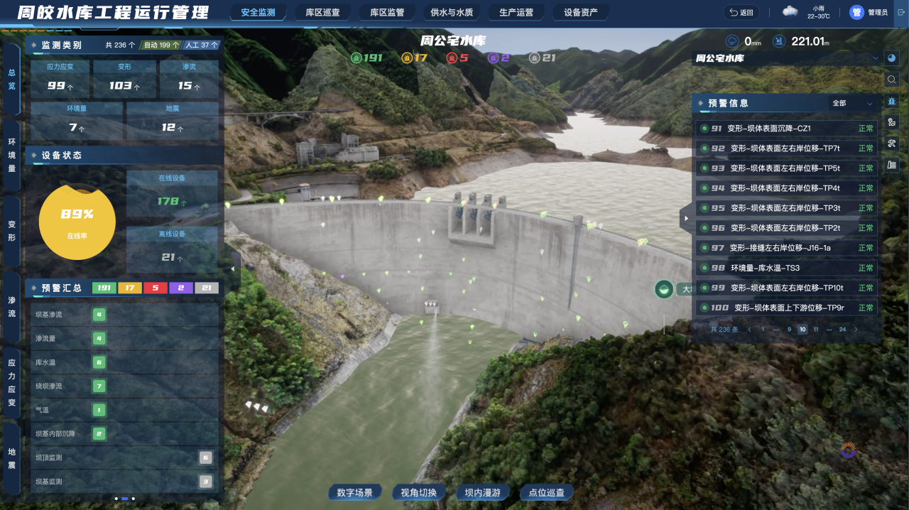 周公宅水庫(kù)運(yùn)行管理矩陣平臺(tái)“四管”工作頁面
