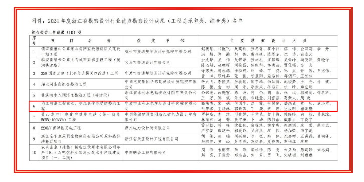 喜報 | 我院項目再獲2024年浙江省勘察設計行業(yè)優(yōu)秀勘察設計成果獎
