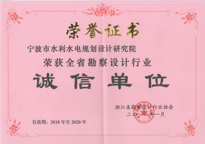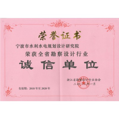 2018浙江省勘察設(shè)計(jì)行業(yè)誠(chéng)信單位證書